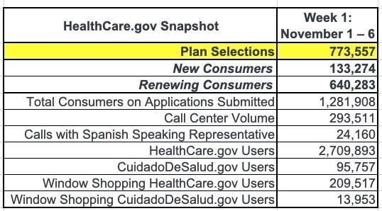 2022 OEP Week 1 HC.gov Snapshot Report: 774K enrollees w/133K new (w/updates)