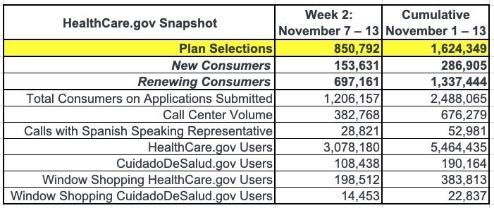 At first glance this may seem disappointing compared to last year's nearly-identical Week Two tally of 1,622,106 enrollees.