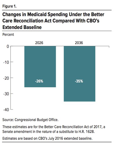 As this accurate chart from Business Insider shows how Medicaid spending is projected to look through 2026 under currentl law vs. under the BCRA: