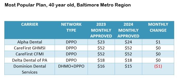 The Maryland Insurance Administration also approved an average rate decrease of - 1.3% for dental rates in the individual market, which is the same average rate decrease initially submitted by carriers. These rates effect approximately 96,000 Marylanders.