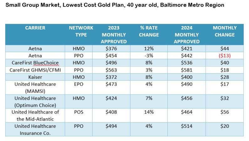 BALTIMORE – Maryland Insurance Commissioner Kathleen A. Birrane today announced the premium rates approved by the Maryland Insurance Administration for individual and small group health insurance plans offered in the state for coverage beginning Jan. 1, 2024.