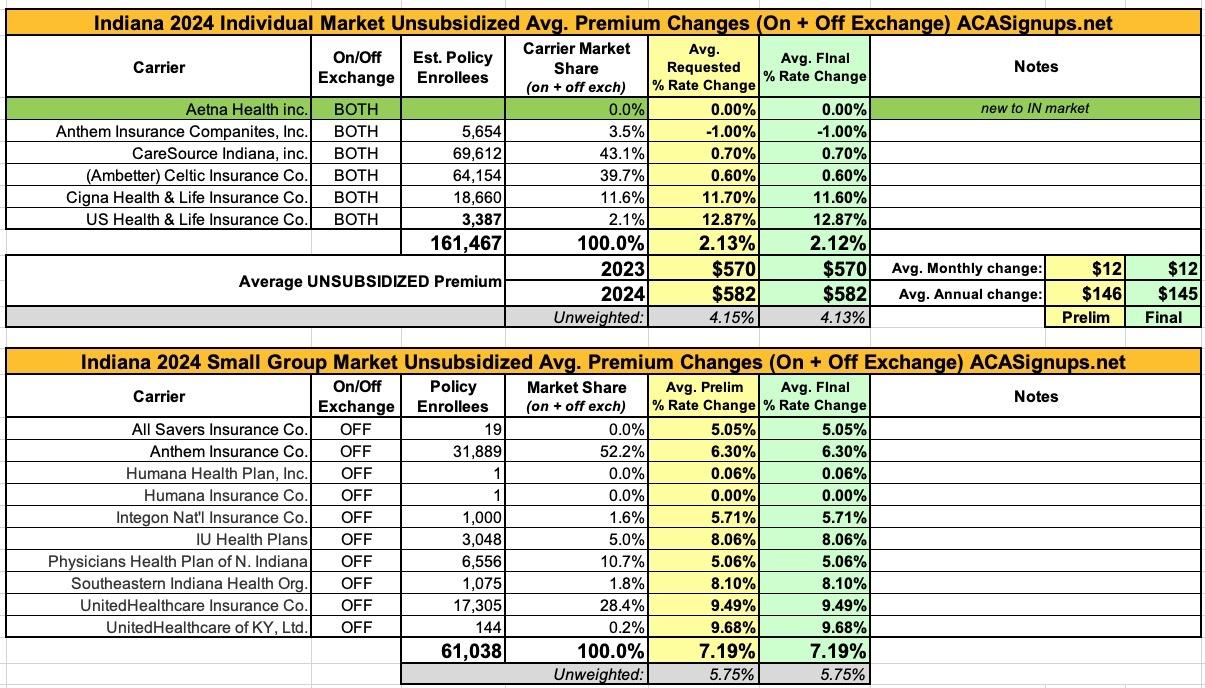 Indiana: *Final* avg. unsubsidized 2024 #ACA rate changes: +2.1%