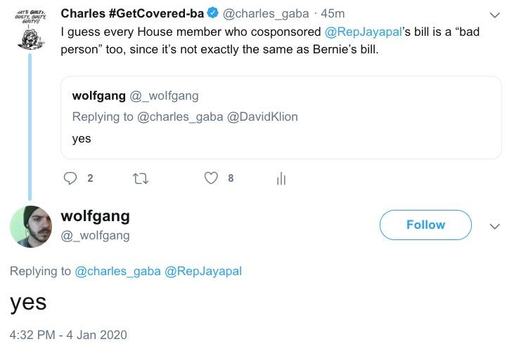 I don't normally post blog entries about the occasional Twitter flare-ups I get into with die-hard Medicare for All supporters, but this one strikes me as being especially noteworthy for several reasons.