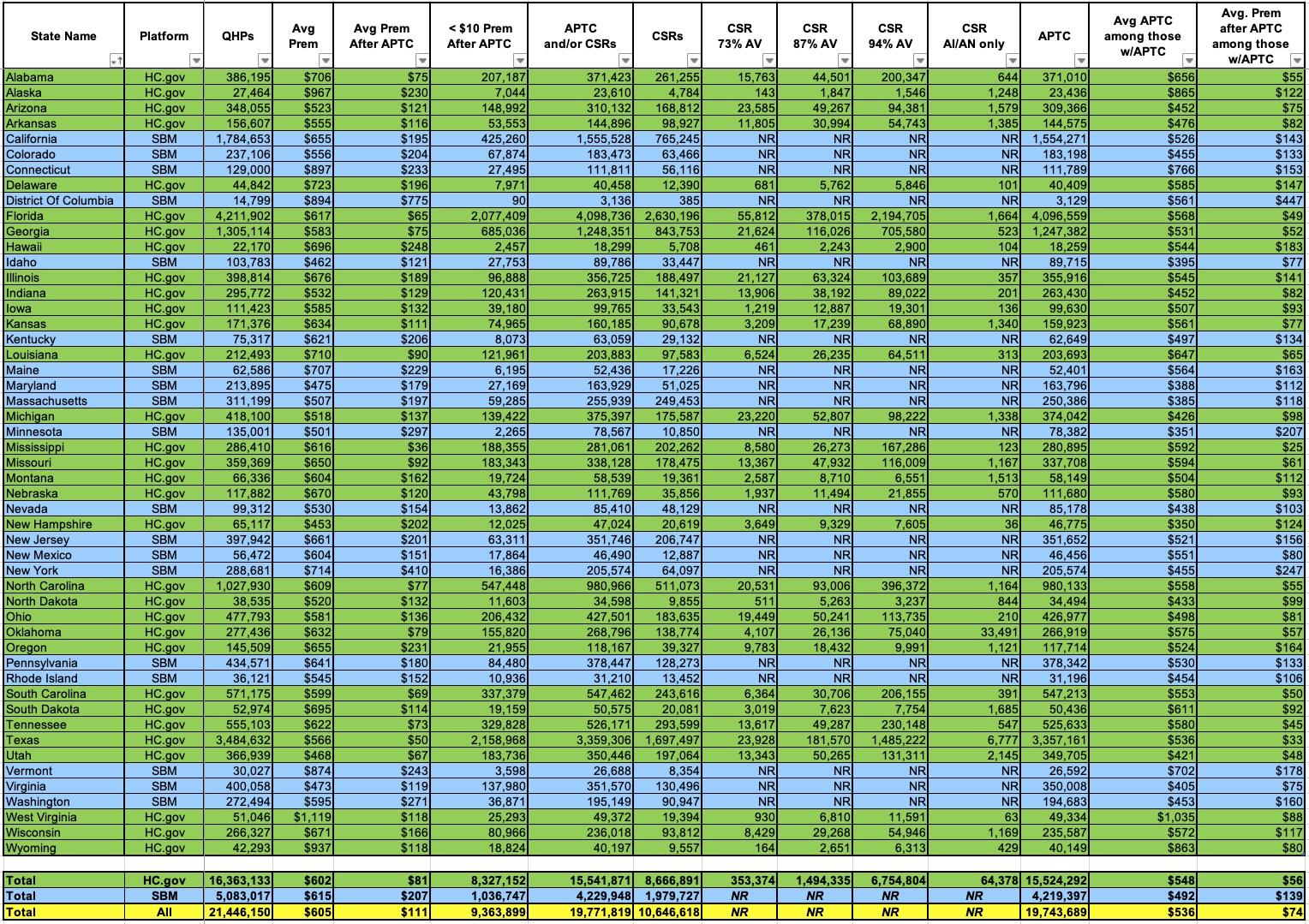 Next up: Premiums, Advance Premium Tax Credits (APTC) and Cost Sharing Reduction (CSR) assistance.