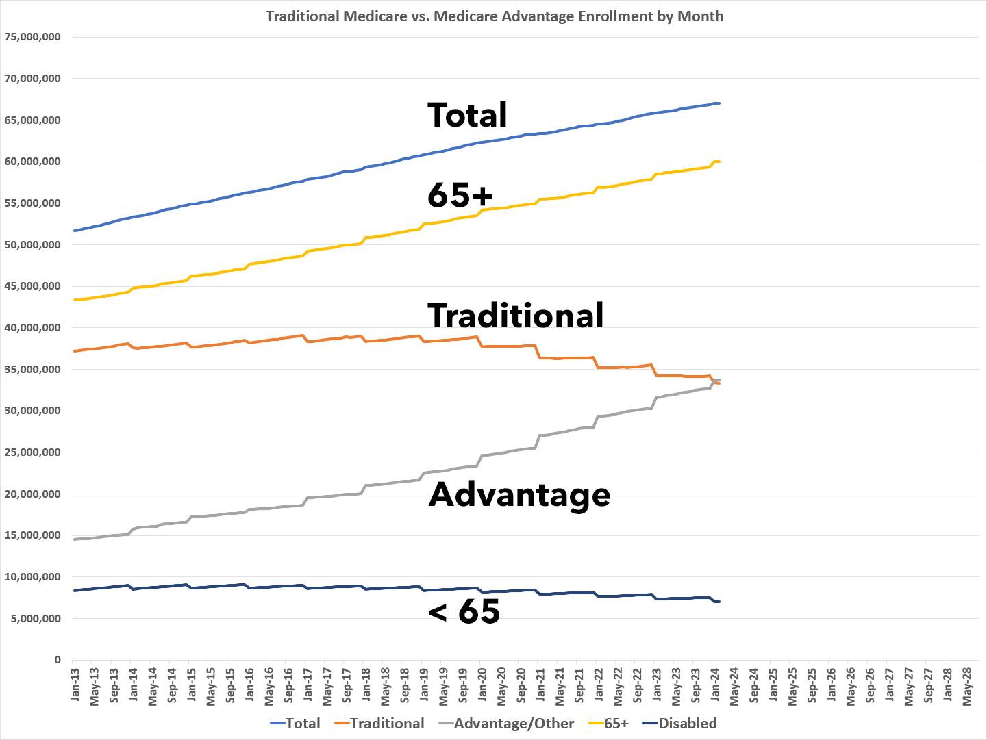 CMS: February Medicare Enrollment Report: Like it or not, Med Advantage is now the default choice.