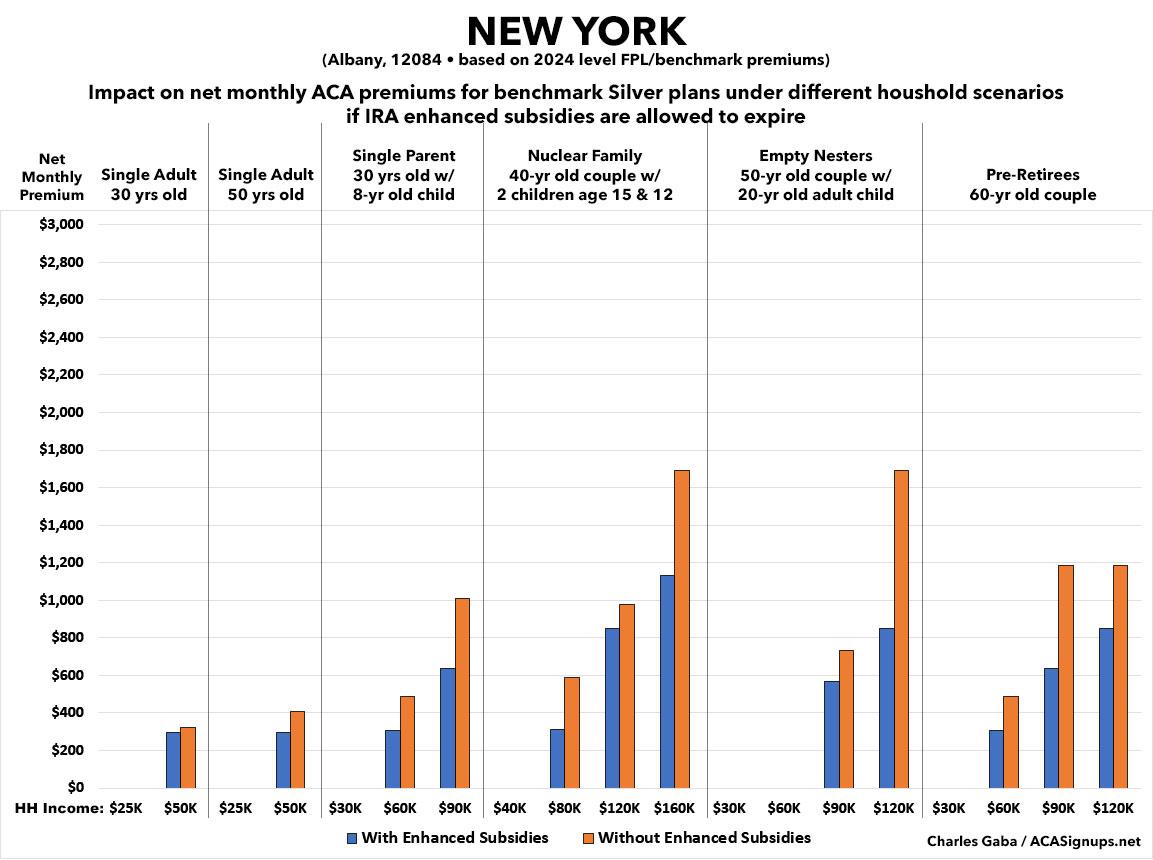 That's the macro level, however. As I did a couple of years ago when the subsidies were originally at risk of expiring in 2023, I decided to run the numbers myself to get an idea of just how much enrollees real-world health insurance premiums would go up in the event the ARPA/IRA subsidies are indeed allowed to expire at the end of next year.