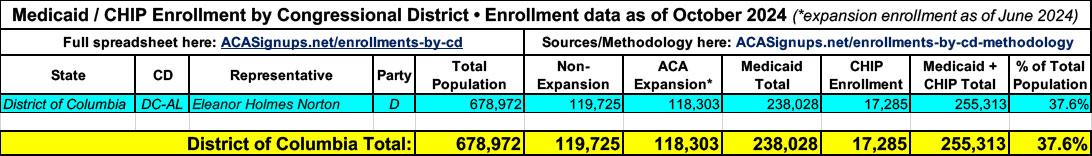 Since I already covered the sources & methodology there, and since the Trump Administration made a ham-handed attempt to cut off Medicaid payment portals yesterday, in this post I've converted the Master Spreadsheet into 52 suitable-for-sharing graphics which break out Medicaid & CHIP enrollment by both state/territory and Congressional District.