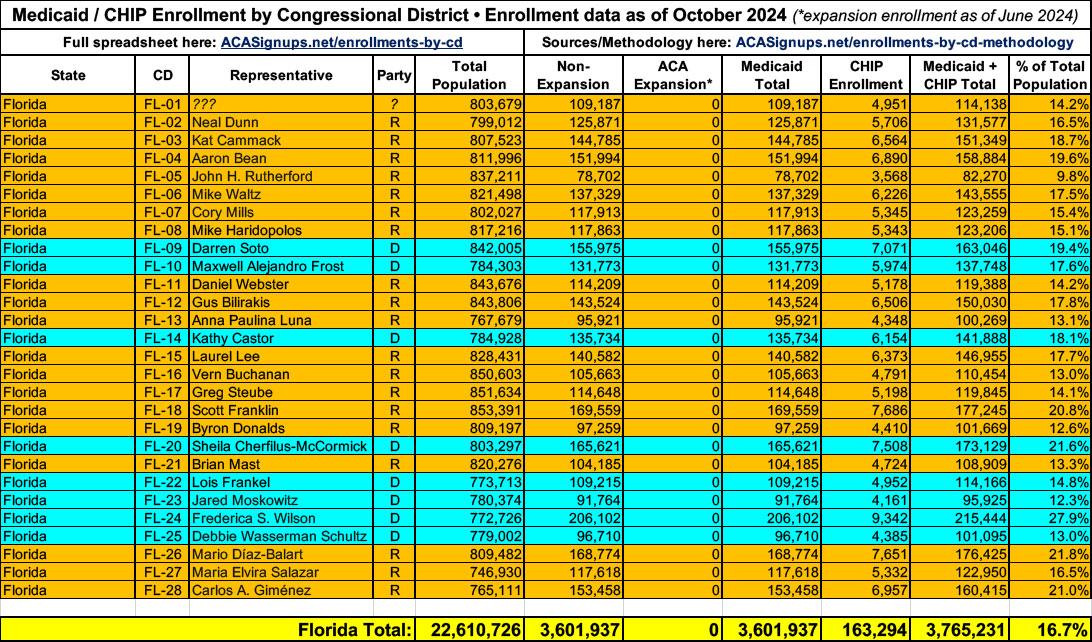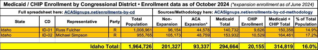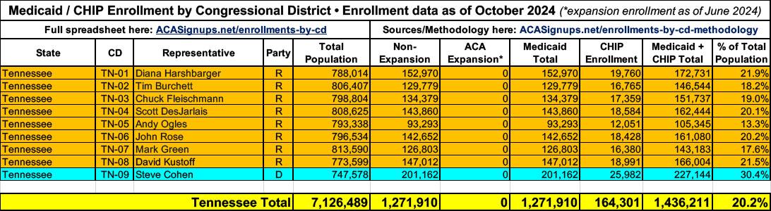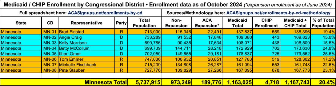 UPDATE 4/18/25: More recent Medicaid/CHIP enrollment data has become available since I first published the spreadsheet, as well as more recent total population estimates. I'm in the process of updating each but the existing spreadsheet data should still be pretty accurate. I'll post again once the spreadsheet itself has been updated.