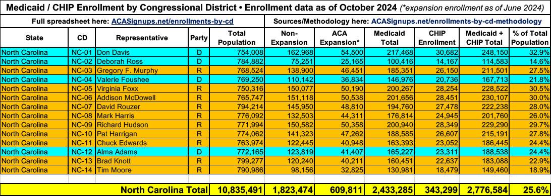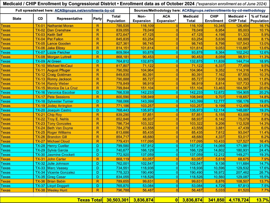 In all cases, the total Medicaid & CHIP enrollment data is as of October 2024 via the Centers for Medicare & Medicaid Services (CMS) prior to the Trump Admin taking it over.