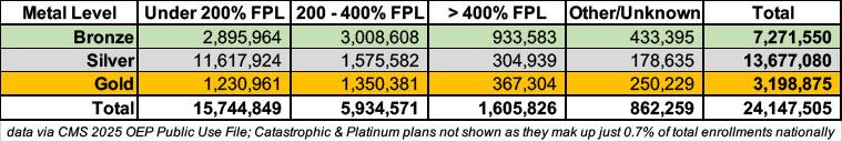 - Premium SUBSIDIES (tax credits) also increased significantly...and since those can be applied towards non-Silver plans...