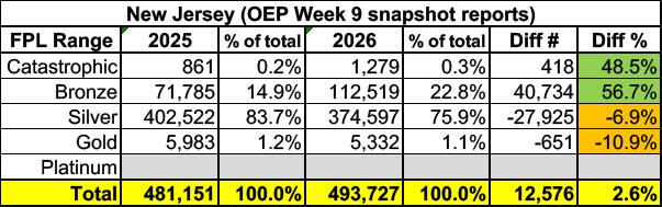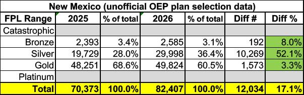 It's also important to keep in mind that last year around 68% of the Silver plan enrollees in these 5 states also received CSR assistance last year (nationally it was around 90%). I don't have the CSR breakout for 2026 for any of them yet, unfortuantely.
