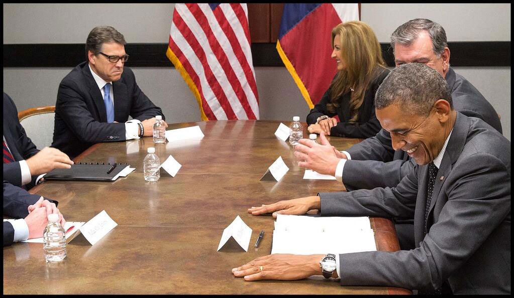 I'm sure most of you have already seen this photo from President Obama's "border crisis" meeting with Texas Governor Rick Perry yesterday.