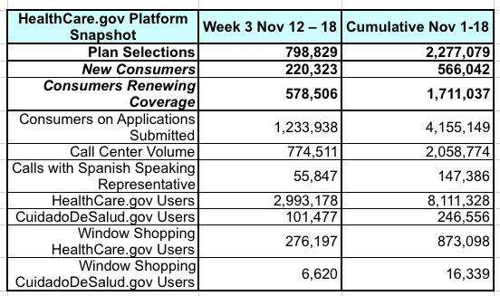The other seven state-based exchanges have released some hard data, but none of their thru-dates match up with the federal exchange (11/11).
