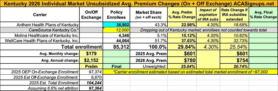In Kentucky specifically, all of this will result in average gross premiums hikes of 29.8%.
