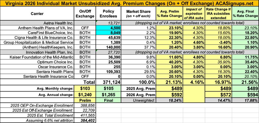 In Virginia specifically, all of this will result in average gross premiums hikes of 21.6%.