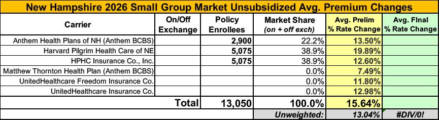 2026 Final Gross Rate Changes - New Hampshire: +17.3%; ~80,000 enrollees facing MASSIVE rate hikes starting in January (updated)