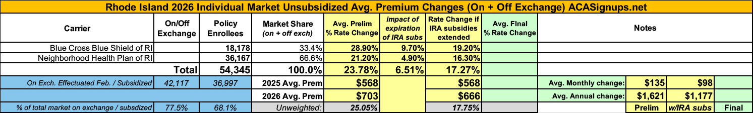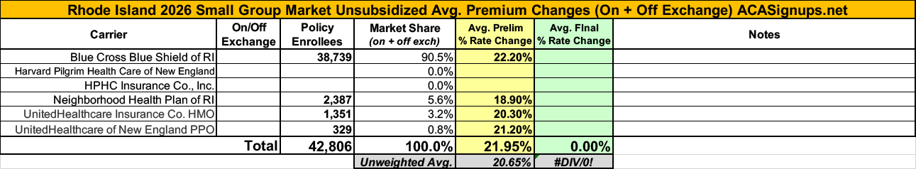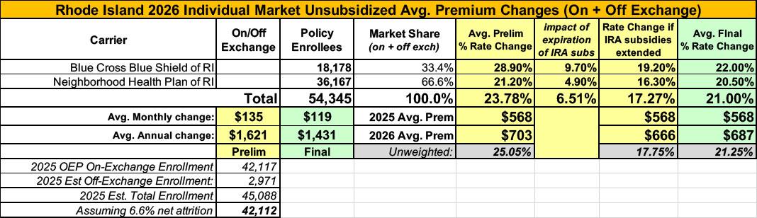 UPDATE 9/19/25: Both BCBS RI and Neighborhood Health Plan have published their final/approved 2026 rate filings.