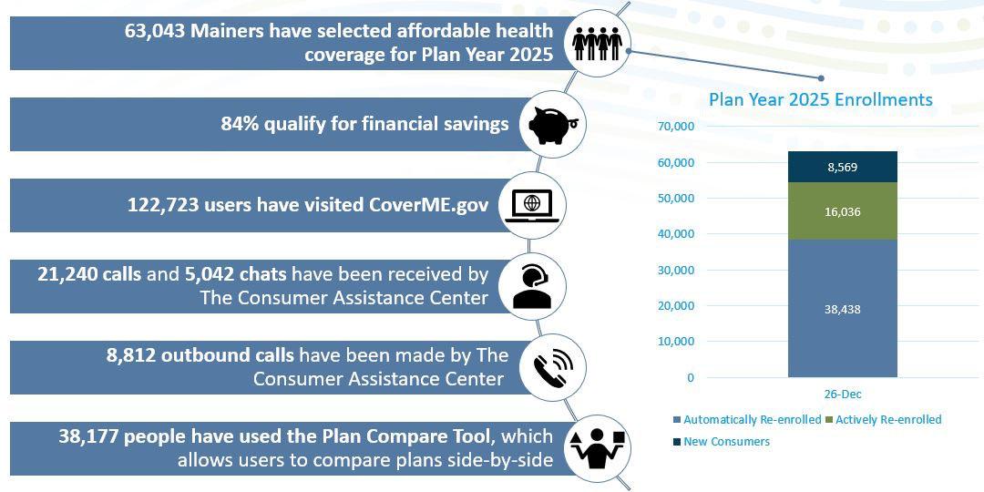 The Centers for Medicare & Medicaid Services (CMS) is committed to a robust Marketplace Open Enrollment process for consumers so they can easily purchase high-quality, affordable health care coverage. CMS reports that a record 16.6 million consumers signed up for plan year 2025 and will receive up to a full year of coverage beginning January 1. Of those consumers, 2 million are new to the Marketplace this year. This represents selections in the 31 states that use HealthCare.gov. Plan selection continues in most State-based Marketplaces, as well. The next national snapshot will be available in early January.