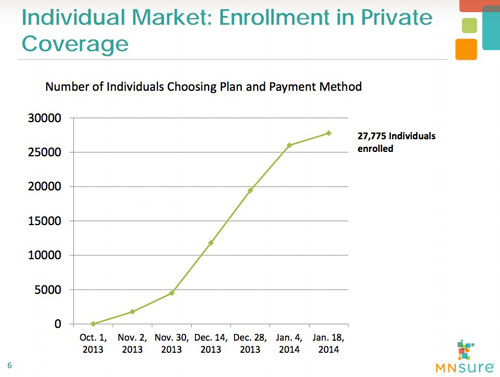 MNsure released its latest enrollment measures on Wednesday, which covered mid-January through Feb. 1. By that date, more than 28,000 people had enrolled in commercial plans — an increase of about 3 percent from two weeks earlier.